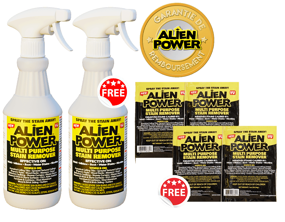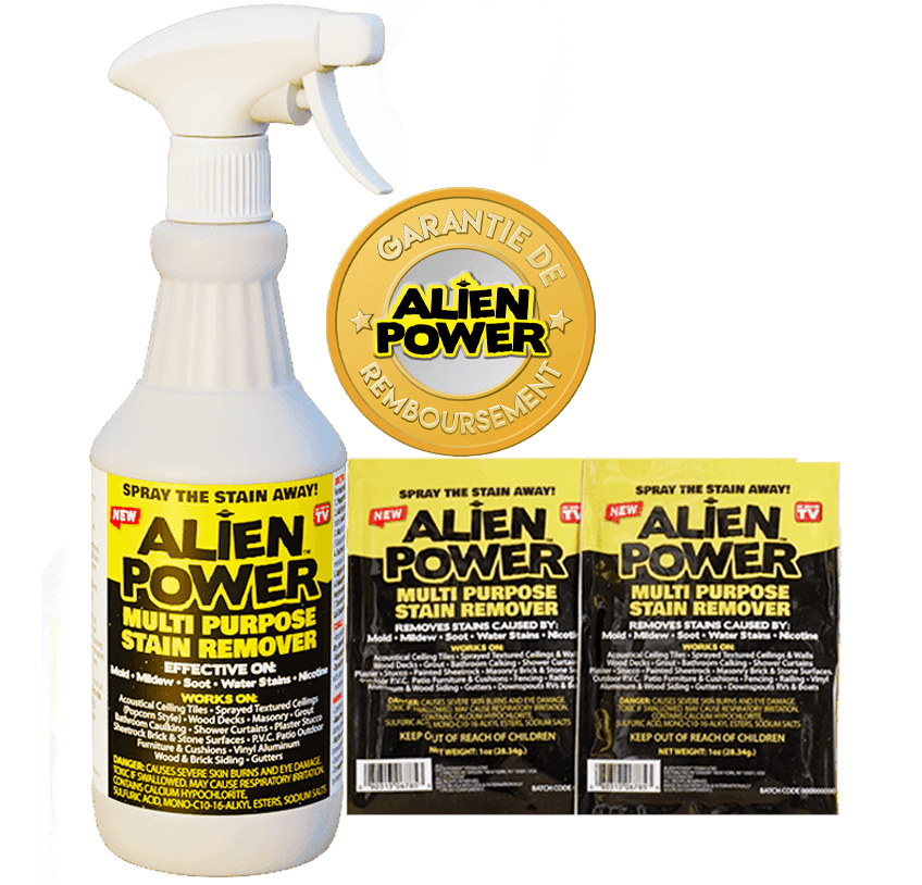 Nous sommes tellement confiants qu'Alien Power deviendra votre détachant multi-usage préféré, vous pouvez l'essayer pendant 30 JOURS! Si vous n'ADOREZ pas Alien Power, renvoyez-les simplement!